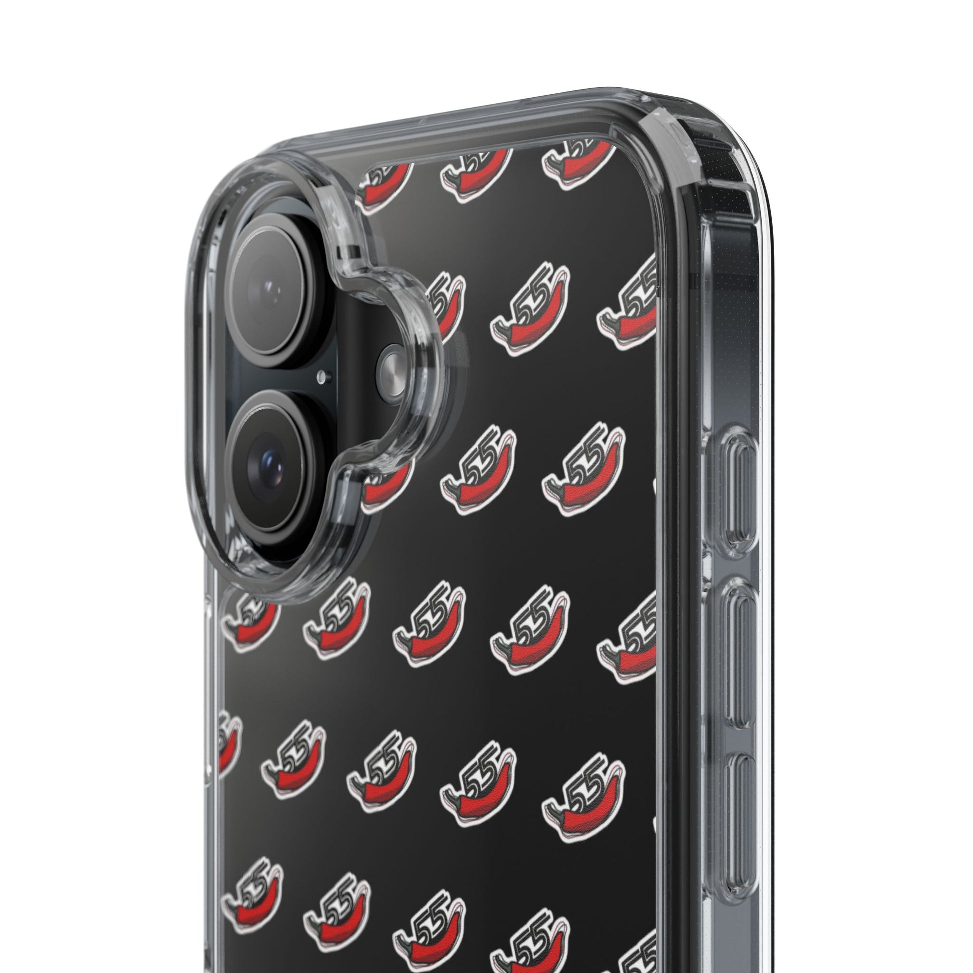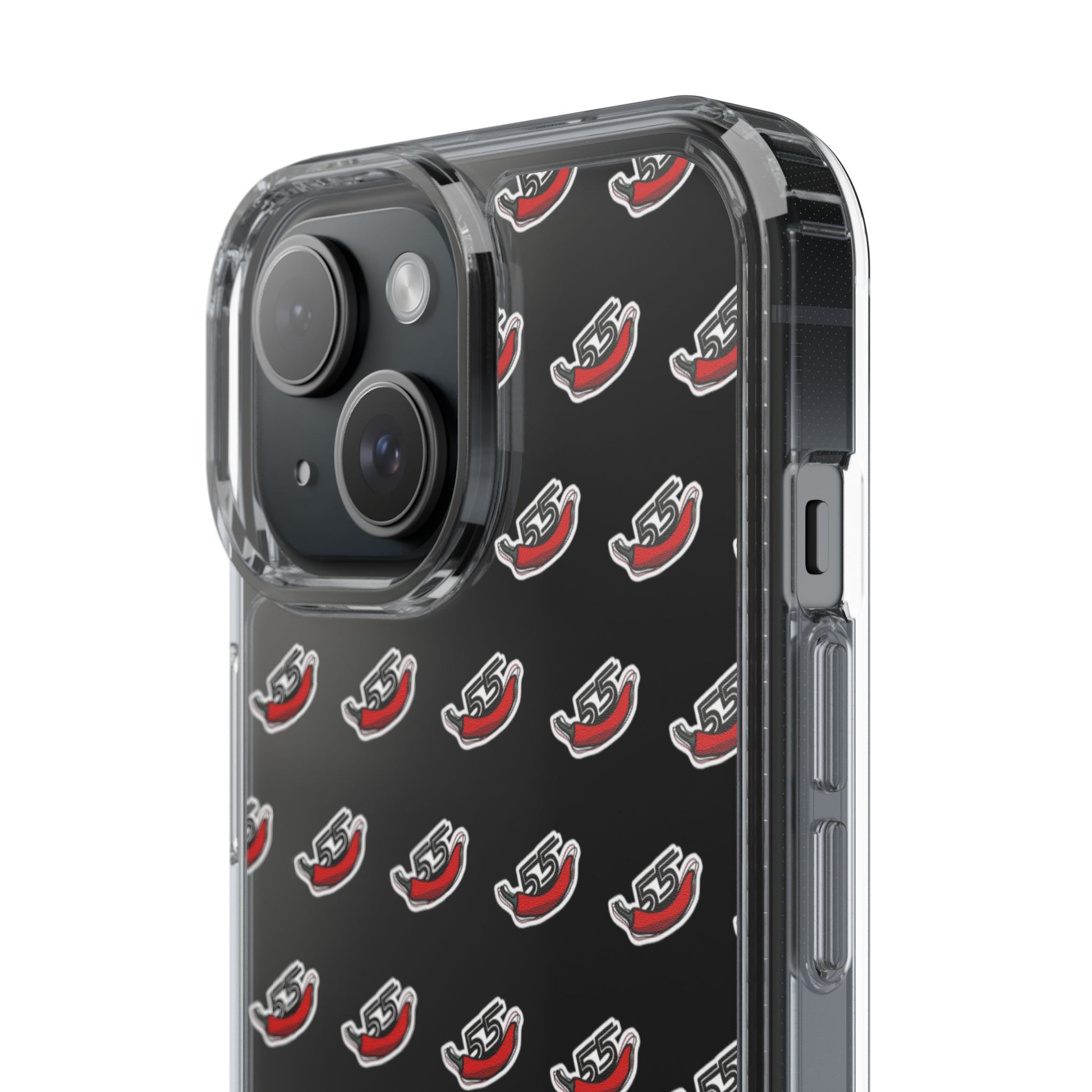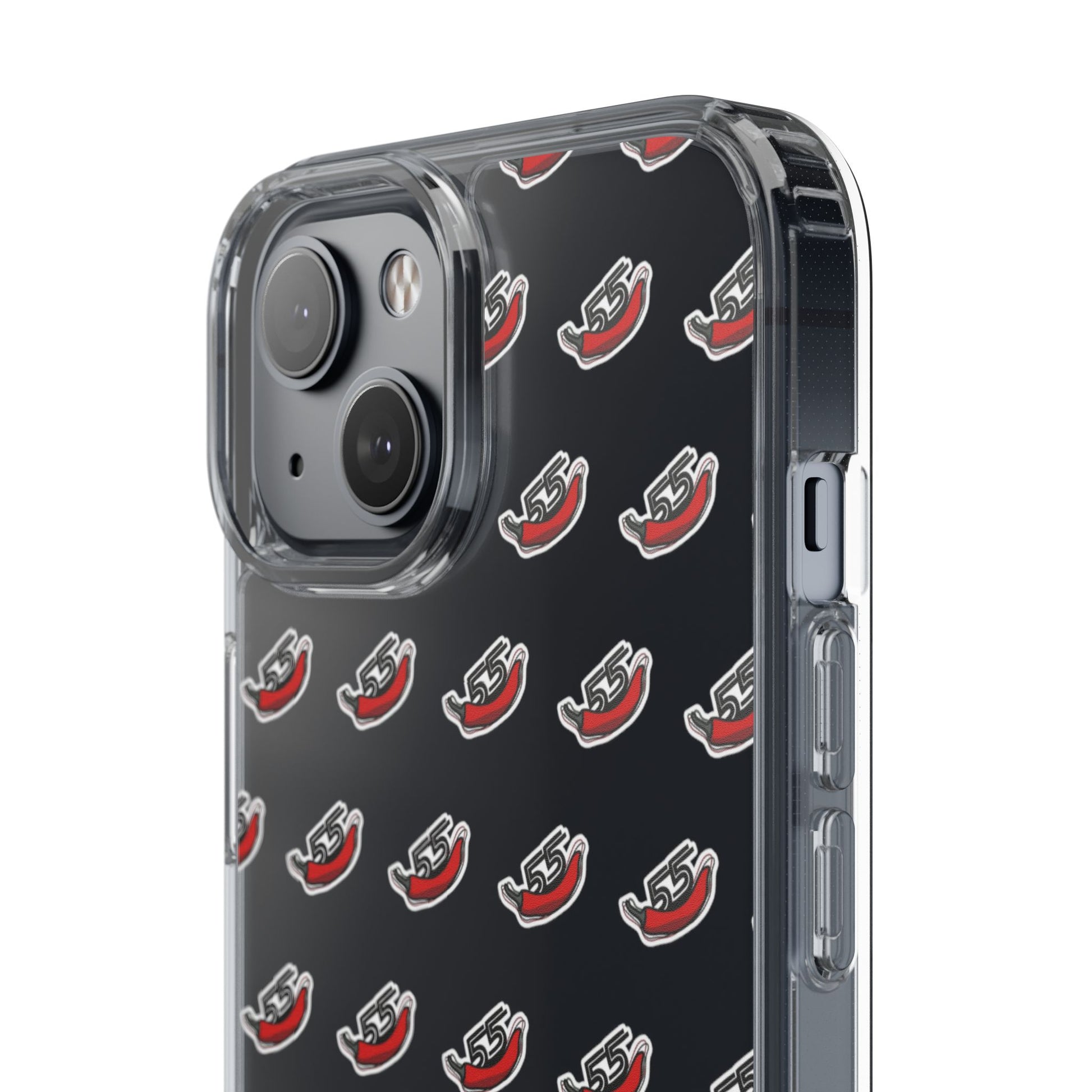 Vibrant and durable phone case featuring a chili symbolizing F1 driver Carlos Sainz with his number 55, perfect for Formula 1 fans. Provides shock absorption and scratch resistance while maintaining a slim form. Ideal for adults who appreciate unique designs and protection for their phone. Great for gifting on birthdays, holidays, or special occasions.